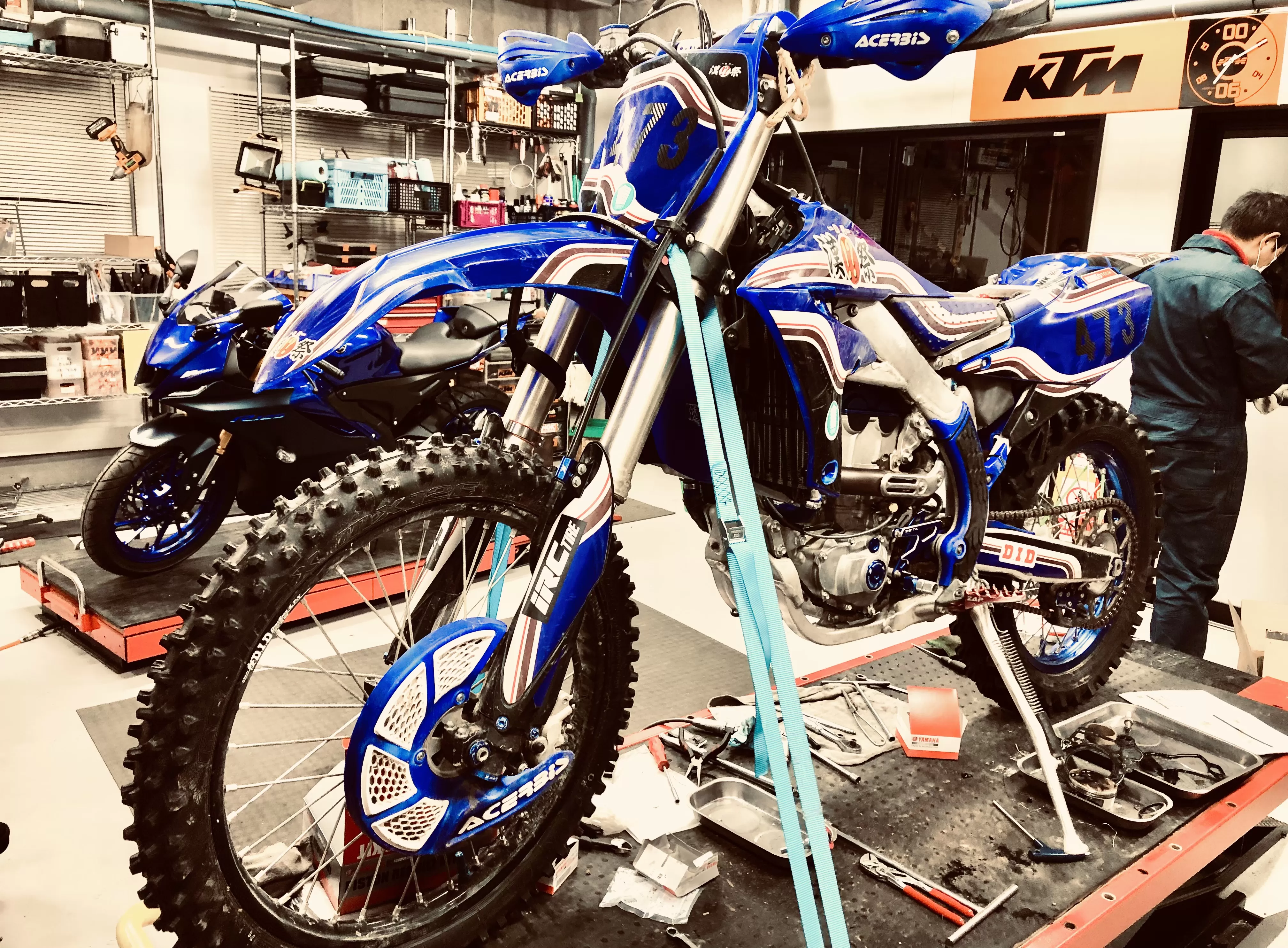 ただ今モトビル工房は#ヤマハブルー 。