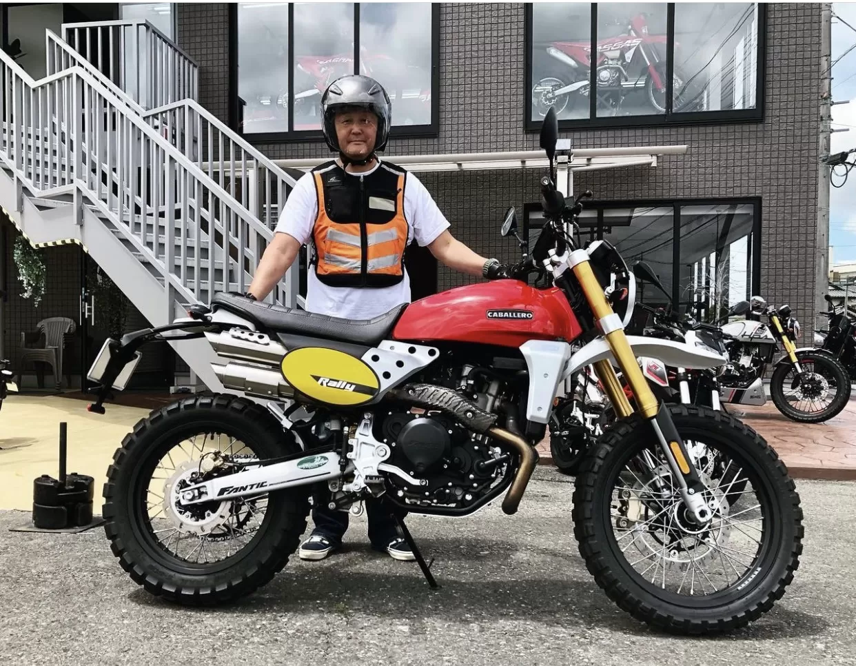 ご試乗、ファンティック#キャバレロラリー500 タンクカバーをキャバレロスクランブラー赤に交換しております。