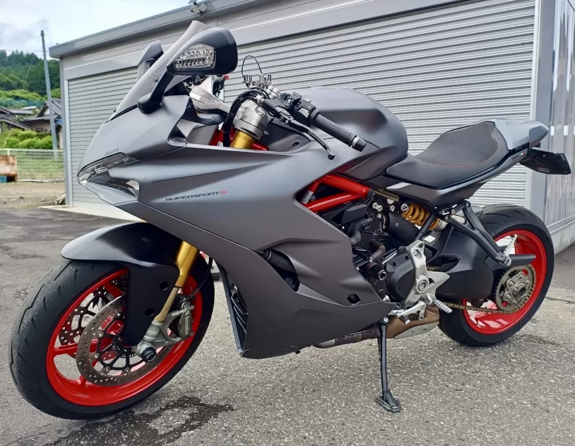 おまたせしました。#ドカティ#スーパースポーツ クーラント、ブレーキフルードの交換、ブレーキキャリパー、エアフィルター、スパークプラグの清掃、そして 燃料タンク、サイドカウル、リアサイドカウル、フロントフェンダー、ミラーウィンカーの再塗装及び補修。