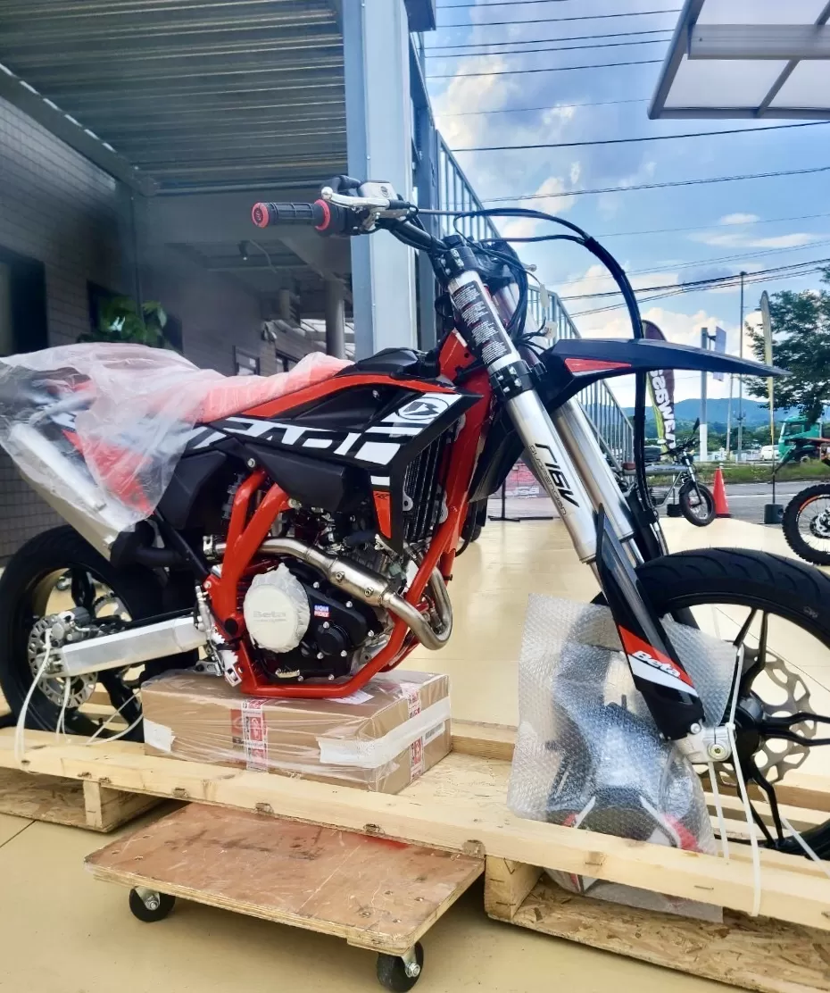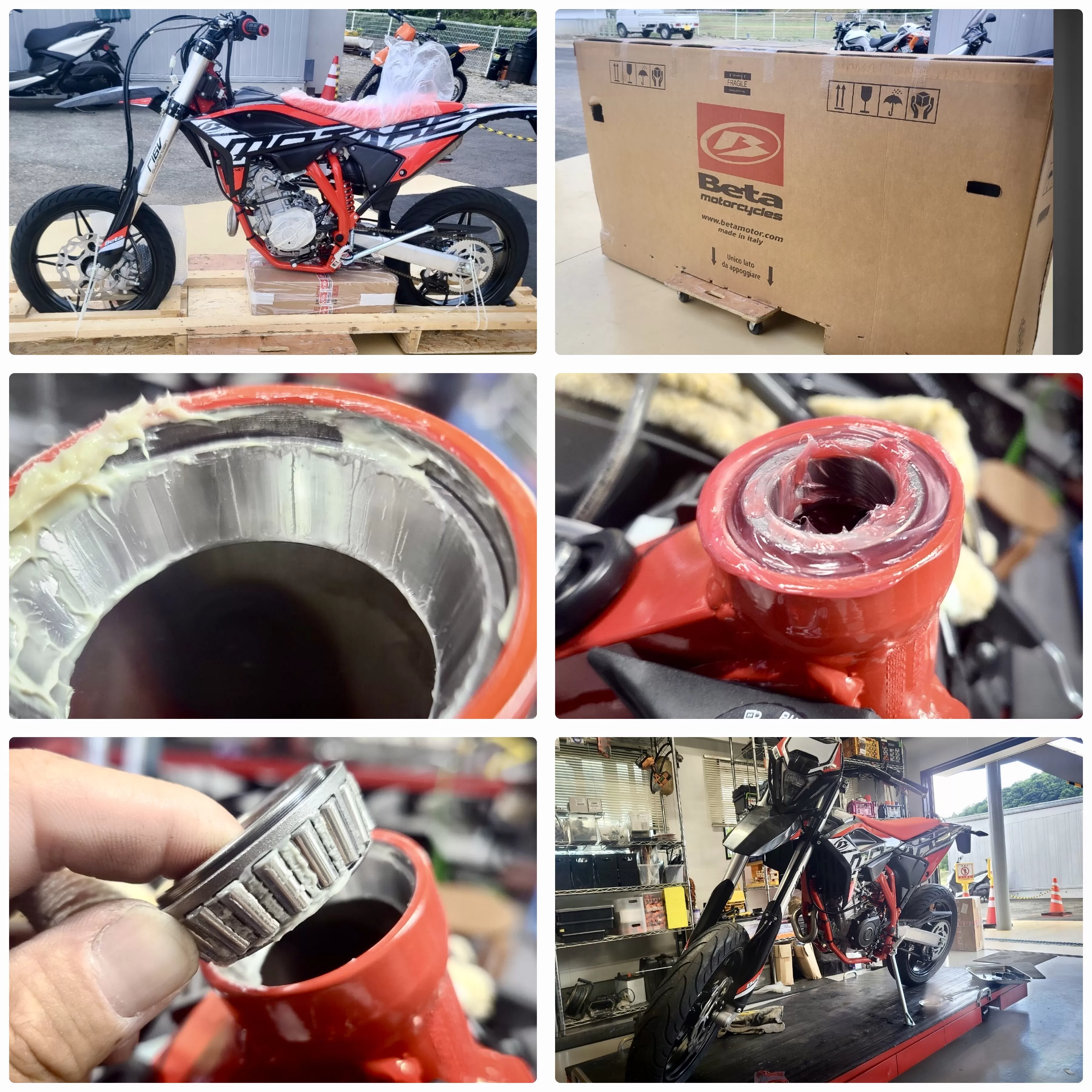 Betaのモタードが入荷いたしました。丁寧にグリスアップしていきます。