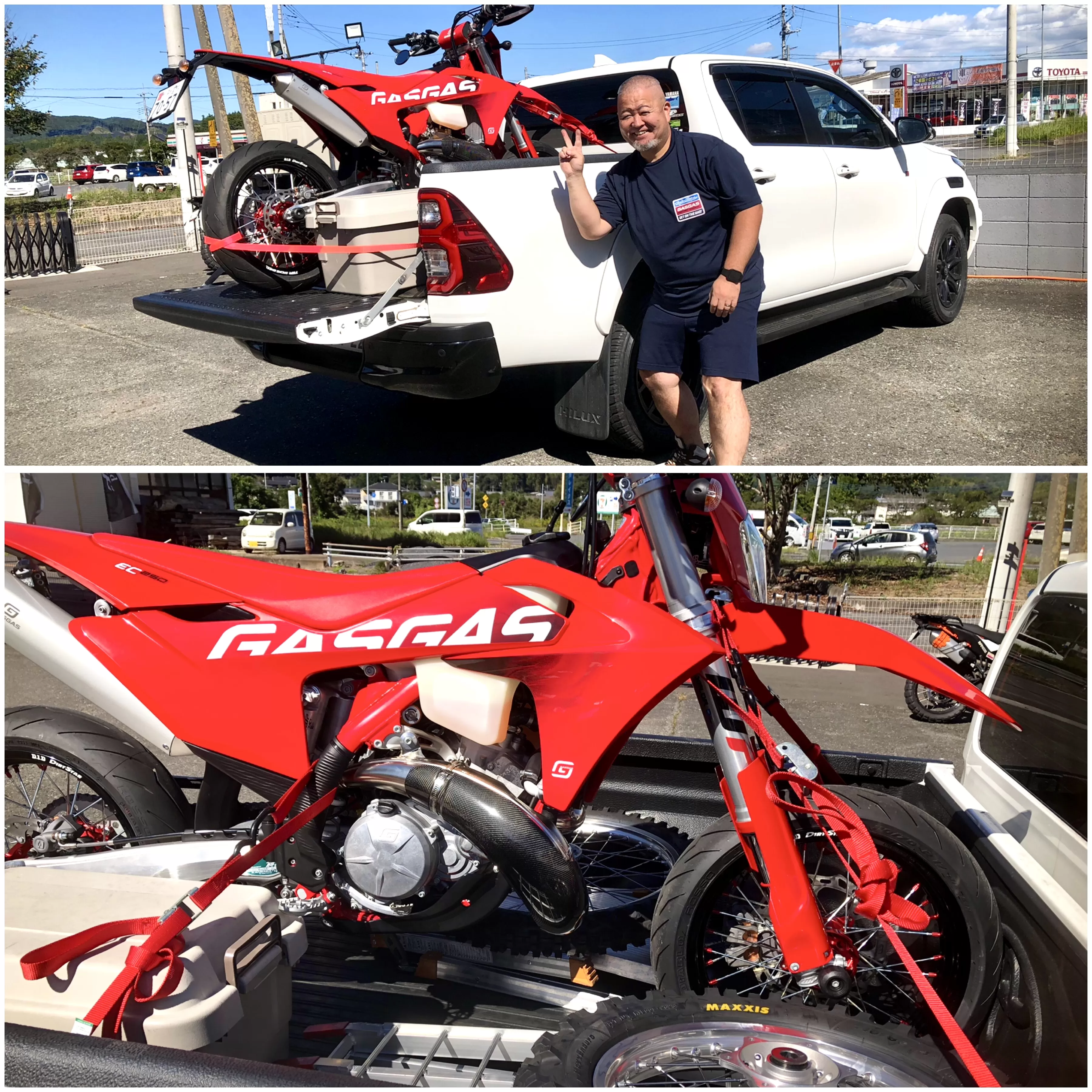 納車#ガスガス#GASGAS最後の2スト登録#EC250#モタード化でゴッつカッコいい! 明日は早速福島方面へツーリングだそうです! テクニクスのホイール間に合った〜楽しんで〜