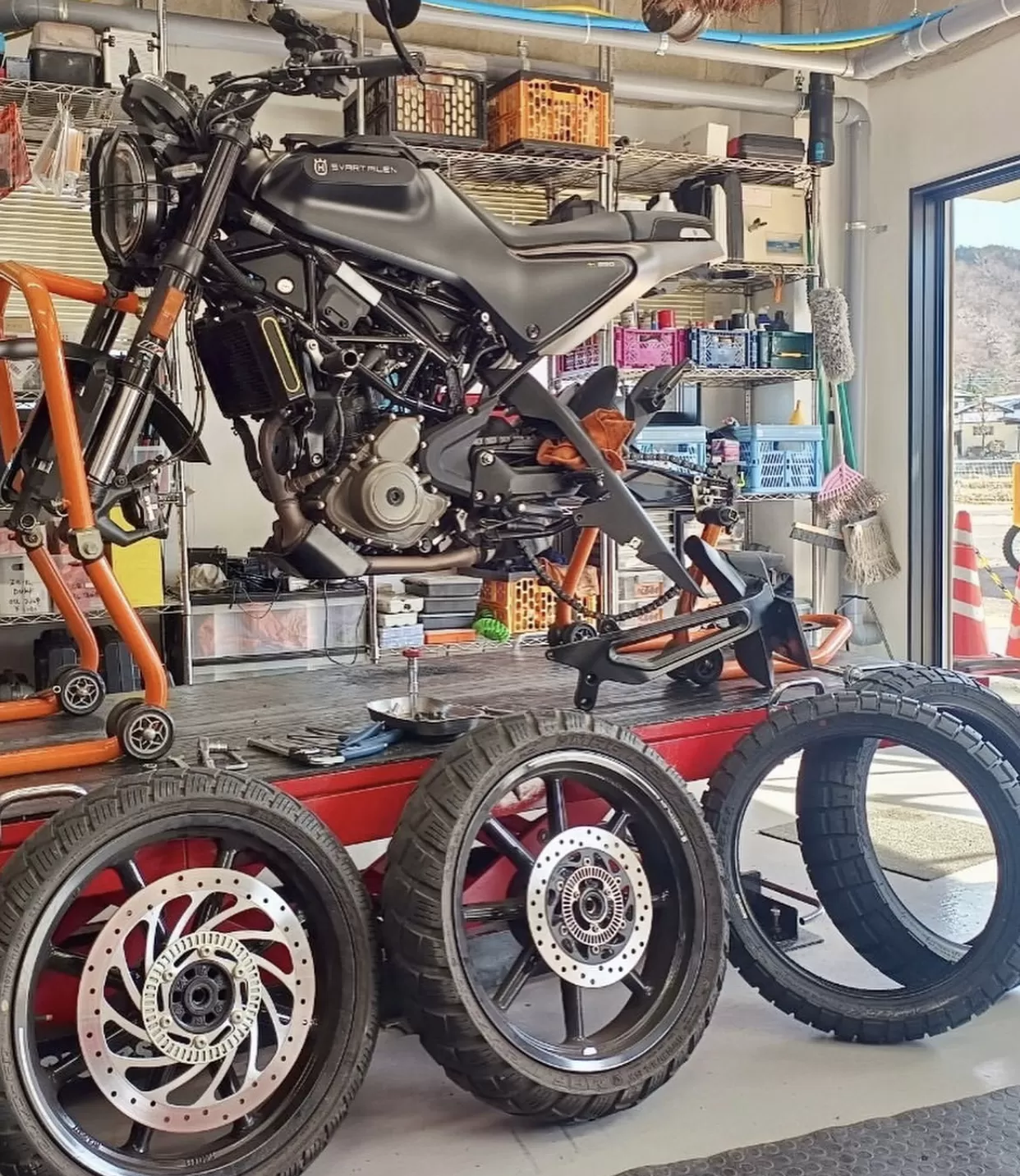 アフターサービス#SVALTPILEN250#ハスクバーナモーターサイクルズ 12ヶ月点検 & 診断機 前後タイヤ交換 PIRELLI SCORPION RALLY STREET エアフィルター交換 スパークプラグ交換 ドライブチェーン清掃注油 USB電源取付