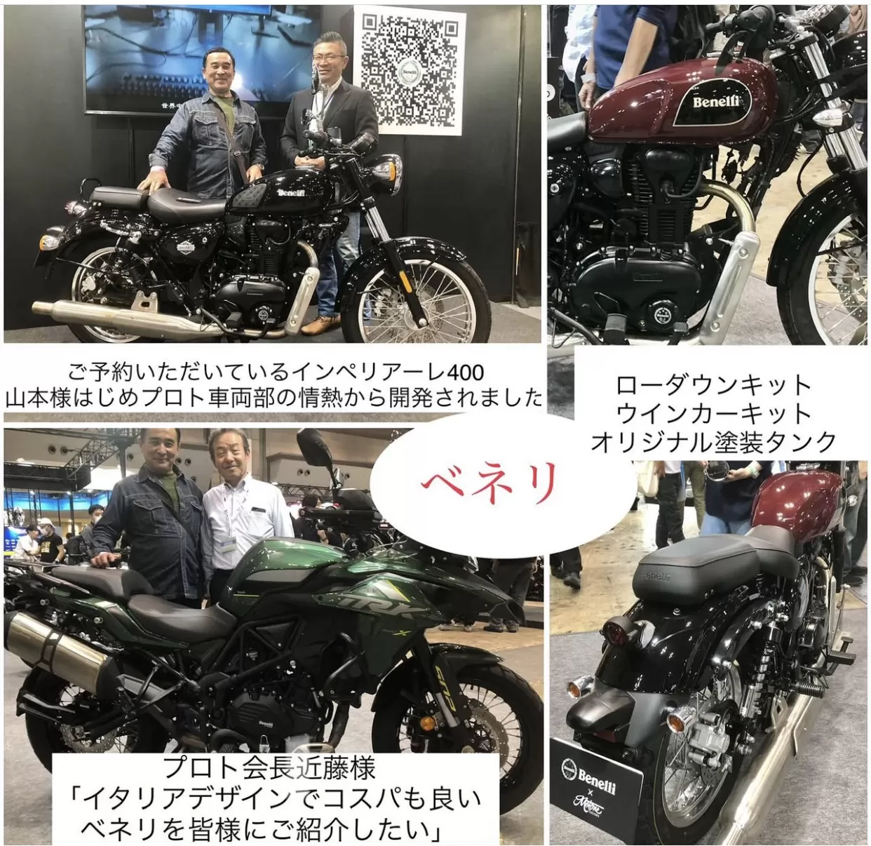 他にも国産4メーカーをチェック。電動過給機のV型3気筒エンジンやY-AMT搭載車、新型モタードなどなど各布陣、興味深かったです。ただKTMやGASGAS、ドカティなどの出展がないのはやはり精彩を欠くというか、物足りない。そのスペースを埋めるように初出展してきたのがQJ。「やっぱり中国産は…」そういう声も未だいただきます。10年前までは我々もそうでしたが。。。玉石混交 のなか、QJは200車種近くを製造する(画像内130種は訂正。ひと昔前の数字だそうです)世界の大工場。。恐るべし。。と改めて感じた今回のTMSCでした。