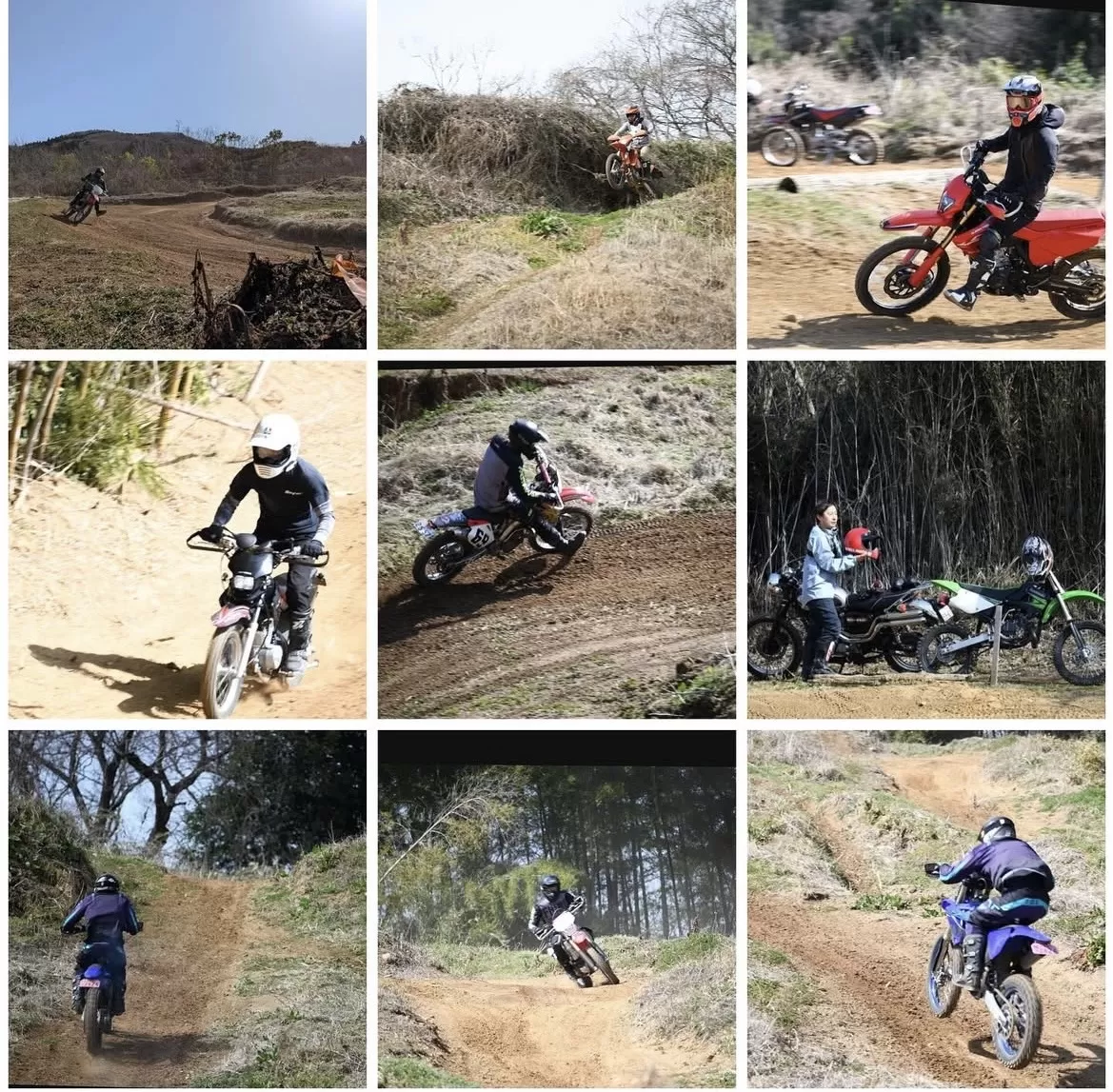 バーチカルツインが通ります〜 最新シェルコのシェイクダウンの横で。 相当前のCRF250xやら カワサキやKTMやQJモータースや。。 お好きな車両でマイペースで走ってください。 練習ですから〜 あ、壊れたら直します〜