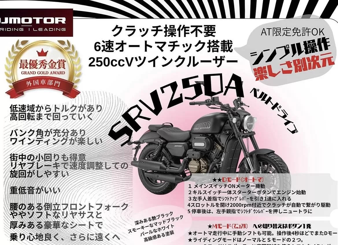 入荷#QJmotor #SRV250Aベルトドライブ 完全オートマチック マニュアル切り替え可能 店主が驚いた高品質と メカニックが驚いた走行性能。 ぜひご覧ください。