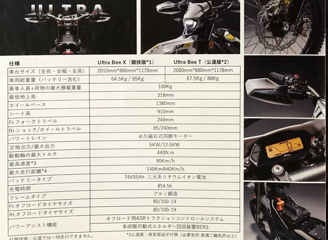 最大航続140キロ、最高速度90キロ(クローズドコースにて)、オフロード用トラクションコントロール付きの電動車です。はぁ〜すごい。。。 軽二輪登録する公道版ですので普通二輪免許が必要でございます!