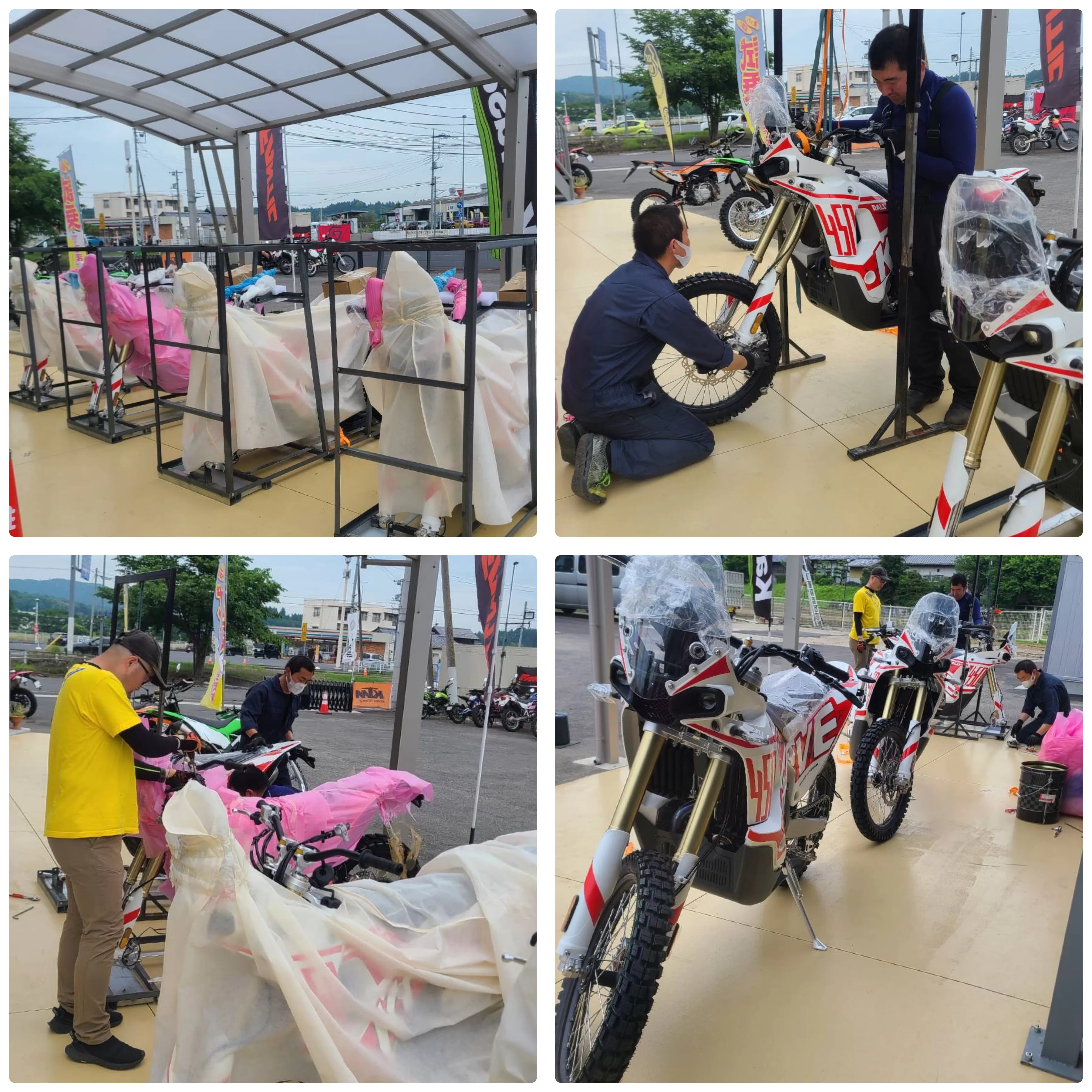 昨日店主と経理係がトライアル世界GPの観戦を終え店へ戻ってみると、メカでもない人達が嬉々として荷をほどいておりました。お待ちかねKOVE の450RALLY 第一便が入荷してまいりまして、ご予約中の皆様の勘が鋭いこと!自分のバイクの開梱なんて、なかなかのチャンスですね。車両は大変きれいな仕上がりでまずはホッとしました。早速「リチウムバッテリー何にするか問題」にとりかかります。NOCOは入荷した4台とも一発で始動いたしましたよ〜このまま経過観察してまいります。もちろんご希望にあわせショーライへのご要望にもご対応いたします。登録書類が届くまでもう少々お時間いただきます。