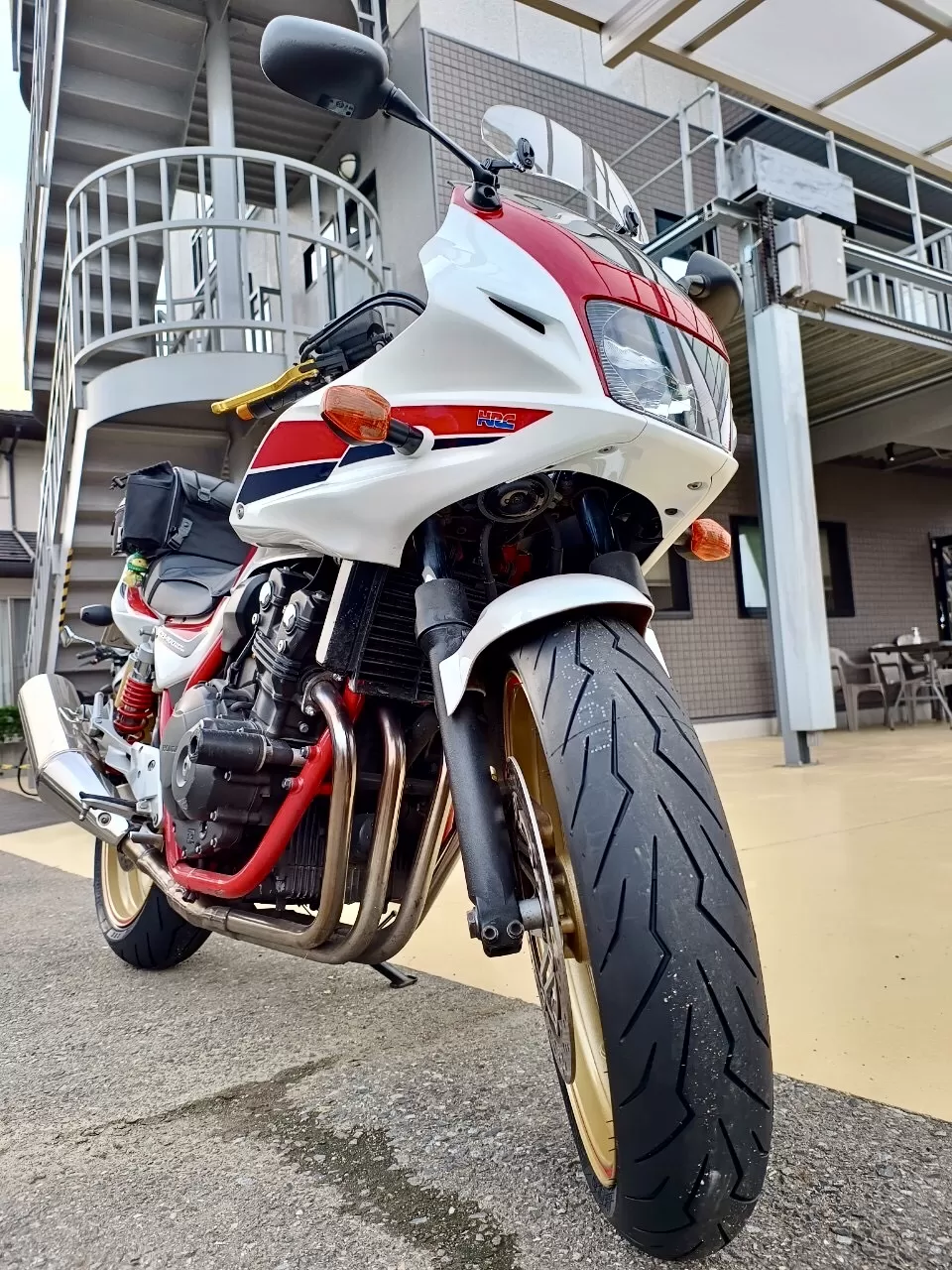 #CB400 SUPER FOURボルドール 20年ほど前のモデルですが、ほぼ毎週ふらりと走られています。まさに相棒。今後もご愛用いただけるよう、車検やタイヤ交換を時々承っております。
