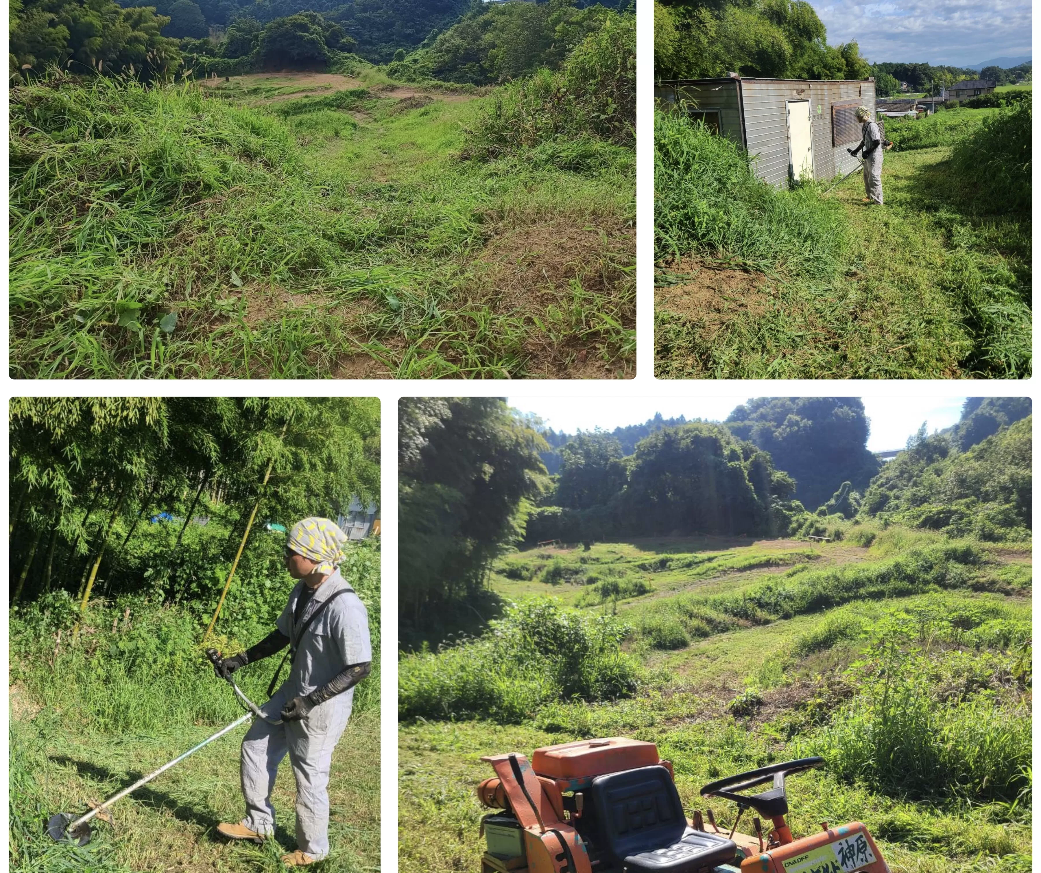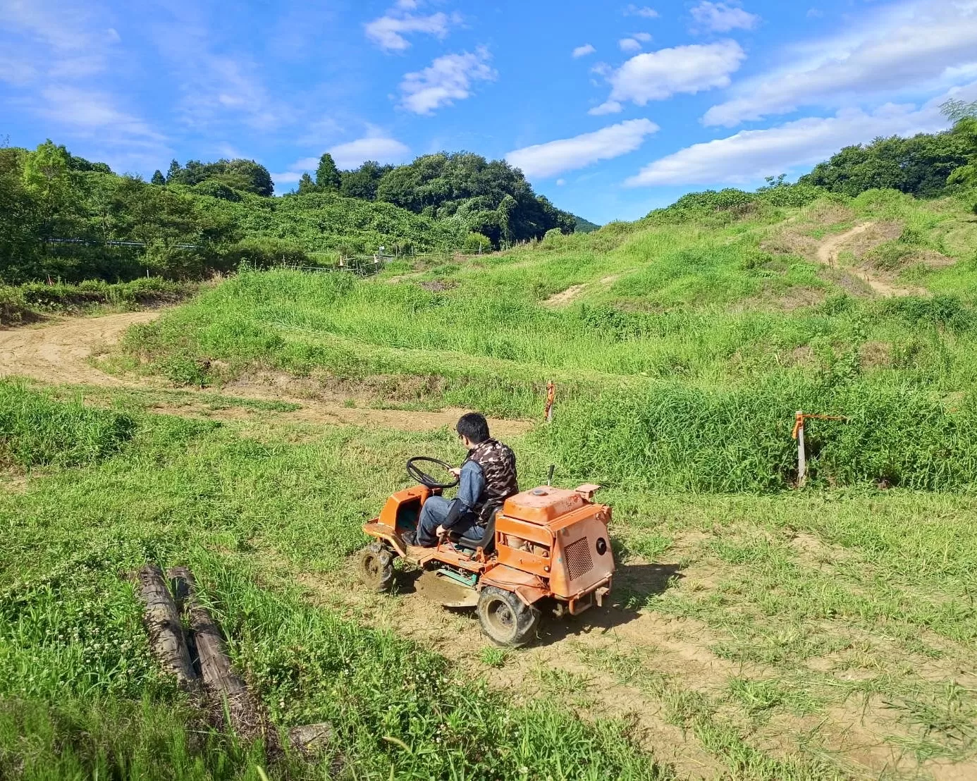 8月1日:モトビルドオフロードコース、初めてのご利用です!車両もレンタルいただきました。 前日は当店コースの整備。 夏場は朝5時半から午前中のうちに整備をしています。草刈りまさお君もありがとう。
