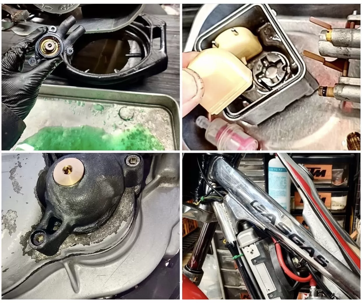GASGAS TXT PRO250 20年以上前の車体です。 キャブレターOH パンクしていたフロートを交換 フュエルフィルター交換 ウォーターポンプシール、シャフト一式交換 クーラント交換 ギアオイル交換 マグネット式キルスイッチ取付