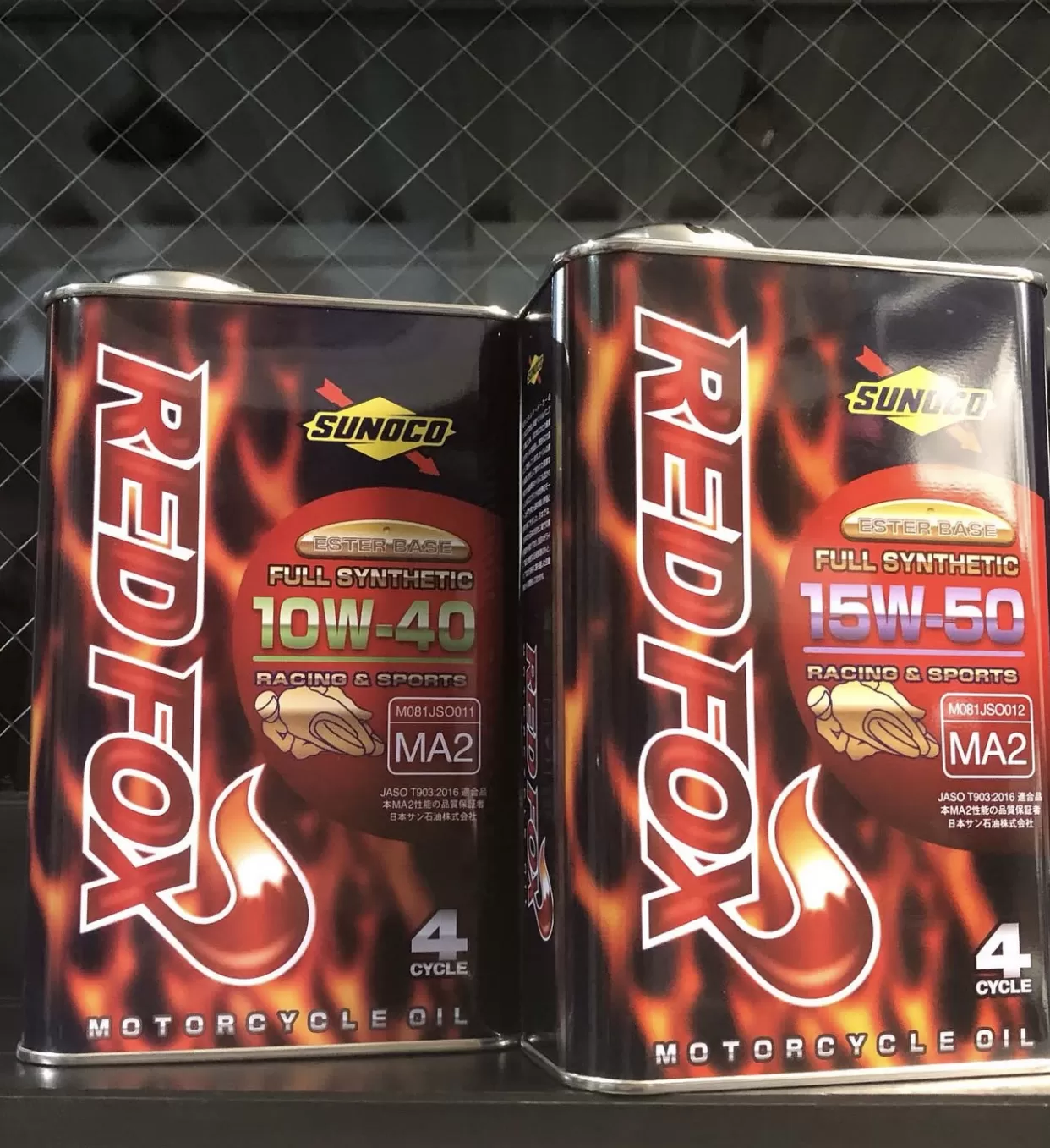 4輪のレースシーンで#SUNOCO をご存知の方もいらっしゃると思いますが、米国SUNOCOが原油採掘・精製をし、販売網を担う日本サン石油が、日本国内に合わせ製造をしている二輪用オイルブランドがREDFOXです。