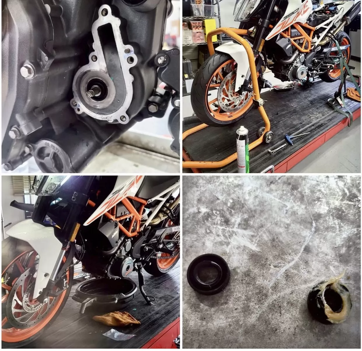 車検#390duke 千葉からご来店 年に数回しかバイクの出番はないものの、これからも長く乗っていきたいとのこと。悪い部分は全て交換して下さいとの事で、タイヤに小さい亀裂を発見しましたが快く交換をご用命下さいました。走行行距離はそれほど伸びていませんが、5年以上経過しましたのでウォーターポンプオイルシールも交換させていただきました。