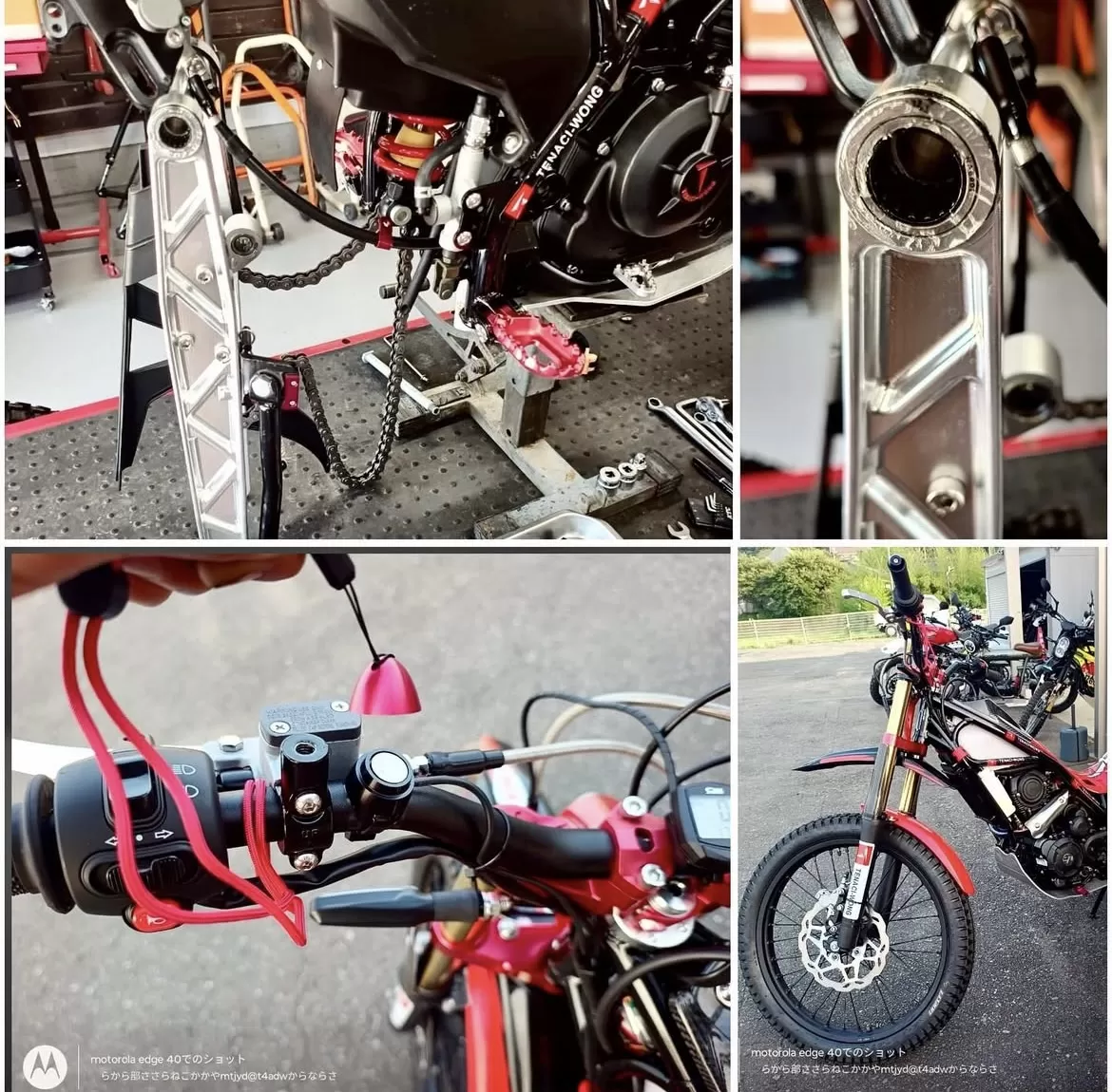 一般道でのツーリング、できます。ただし他車に引っ張られないようマイペースで。高回転で回しっぱなしでの巡航はしないよう(オフロード車全般そうですが)ご留意お願いします。本来は山腹に潜り込むのが得意ですが、目的に合わせて二次減速比も変えていきましょう。テナシオンTWJ200は「ツーリングトライアル」、軽さが魅力の良いバイクです。なかなか他にないモデルですがこれを探し当て、福島県からご購入いただきます????