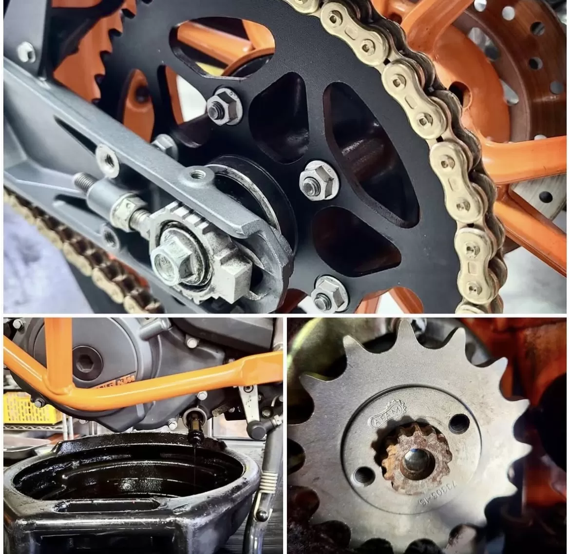 車検#390duke オイル交換、クーラント交換、ブレーキフルード交換、ドライブスプロケット3点セット交換 前オーナー様に愛用され、 2代目オーナー様のもとで これからも。