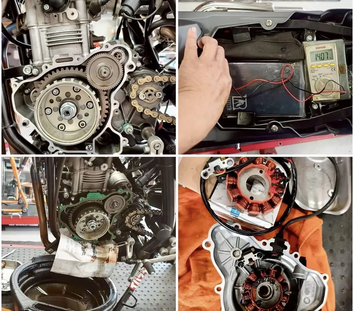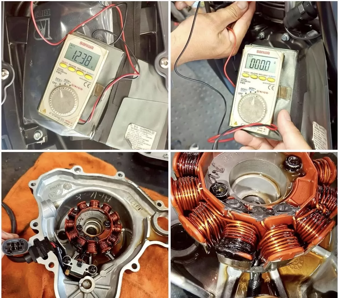 アイドリング電圧がやや低く、回転を上げても電圧が上がらない状態でした。調べたところステーターコイルがショートしていることが判明したため、これを交換しました。