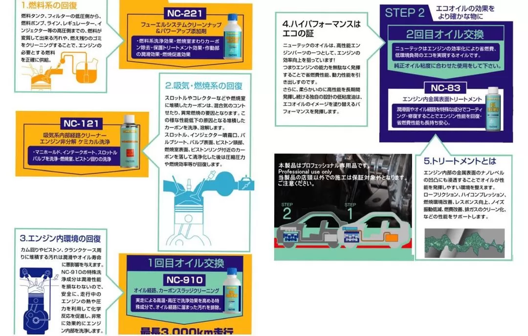 蓄積されたスラッジが取り除かれたエンジンは燃圧を取り戻し復活。効果は2万キロ以上維持されます。距離が伸びてきたら、いえ、新車のはじめからボディにコーティングをかけるようにオイル経路をコーティングしておくと大変効果的です。全ての車両におすすめします!
