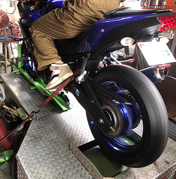 シャーシダイナモ「ダイノジェット」を使用し、最高速度と最高出力を馬力(hp)とトルクという形で視覚化。エンジンの回転数に伴うパワーカーブを正確に捉えると同時に、排気の空燃比を測定し、燃焼状態を確認できます。 これらの数字や曲線で車両の状態を把握し対策を立てたり、チューニング結果を体感に頼らず数字で客観的に比較することができます。特に全車にオススメするのは、車両の健康診断としてデータを取ること。環境規制のため燃料が過度に薄めに噴出されている結果となれば、エンジンをいたわる方策を打つことができます。また場所や季節に合わせて自身の走法にあった燃料噴射に切り替えるマップもシャーシダイナモを併用することによって明確に作成できます。